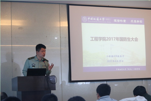 (通讯员:文新)4月28日上午,必赢3003no1线路检测中心2017年国防生大会在工程楼418报告厅召开。院党委副书记江广长,校国防办主任李凛,驻校选培办干事谭皓,辅导员丁继国、文新、王俊以及学院全体国防生参加了大会。