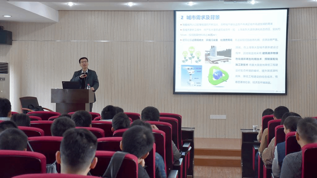 报告围绕“城市更新中绿色施工技术探索与实践”展开,介绍了上海建工集团工程研究总院在复杂的城市环境中绿色施工技术的探索和工程实践经验,分别从“高架桥梁预制拼装技术”、“地下结构预制拼装技术”和“渣土再生利用技术”三个方面介绍了绿色施工技术中的关键技术问题和积累的工程经验。报告结束后,吴小建所长热情回答了参会师生的提问,他衷心希望必赢官网师生在城市绿色施工技术上取得更大的突破,为解决我国城市施工中的环境难题做出贡献。
