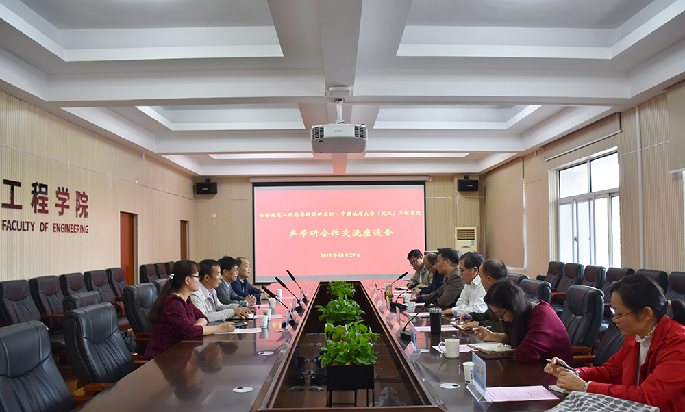 29日下午在工程楼315会议室,云南地质工程勘察设计研究院纪委书记潘进兵、副院长赫念学、副院长李林涛、办公室主任张锦霞一行至校与必赢官网举行产学研合作交流座谈会。院党委书记陈飞、副院长王亮清、院党委副书记江广长、工程地质与岩土工程系主任章广成、勘察与基础工程系主任卢春华、办公室主任胡燕、土木工程与力学系周丽珍参加了座谈会。江广长主持会议。