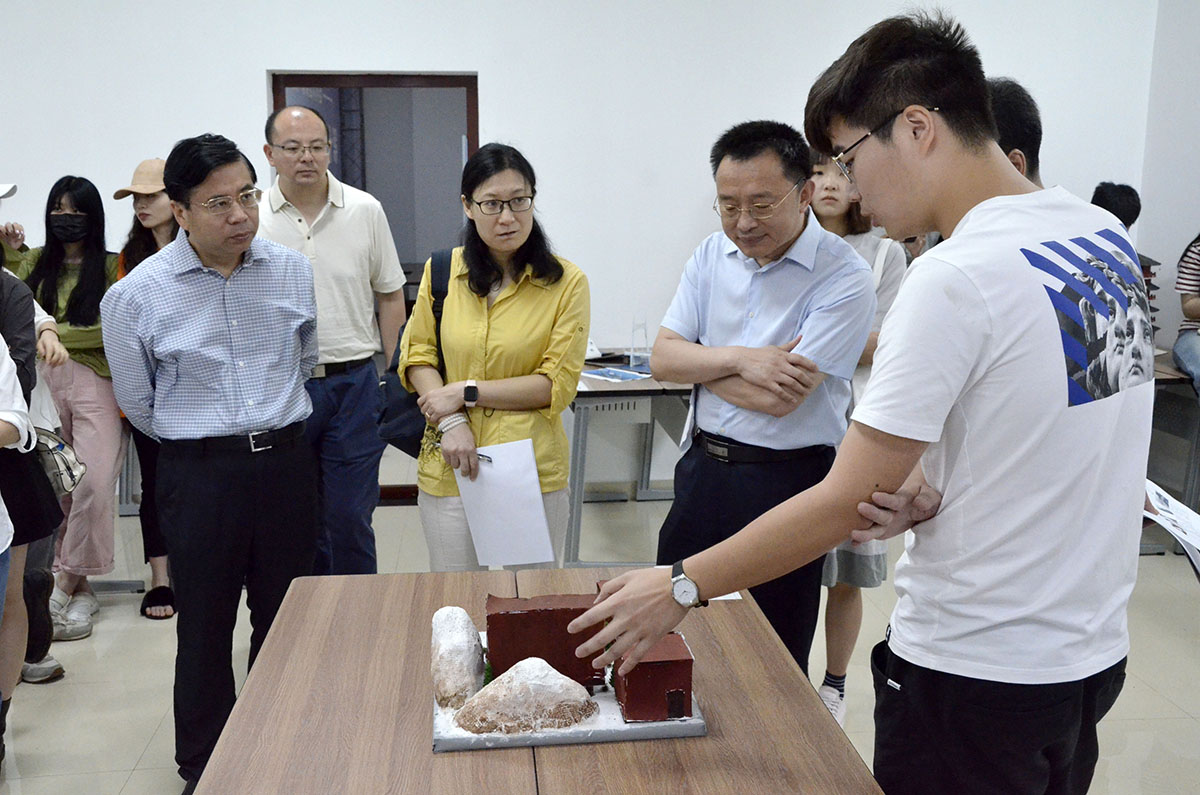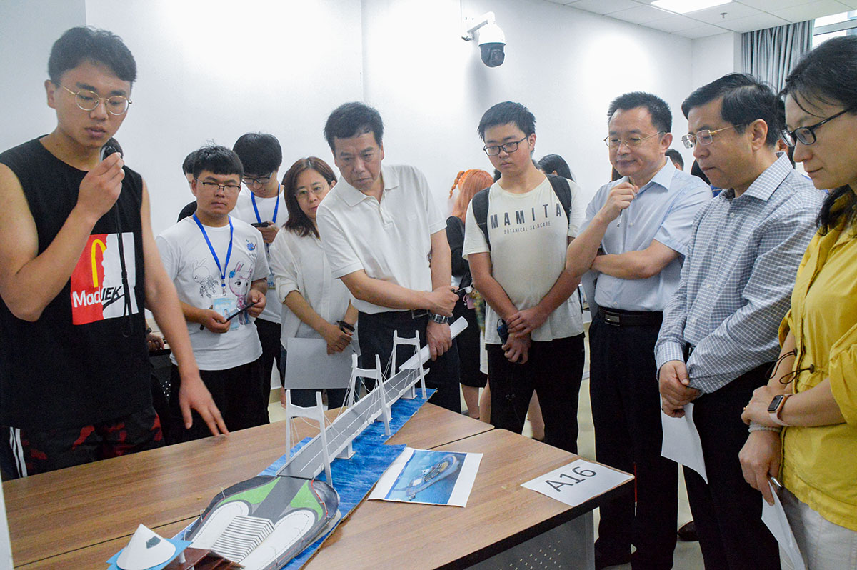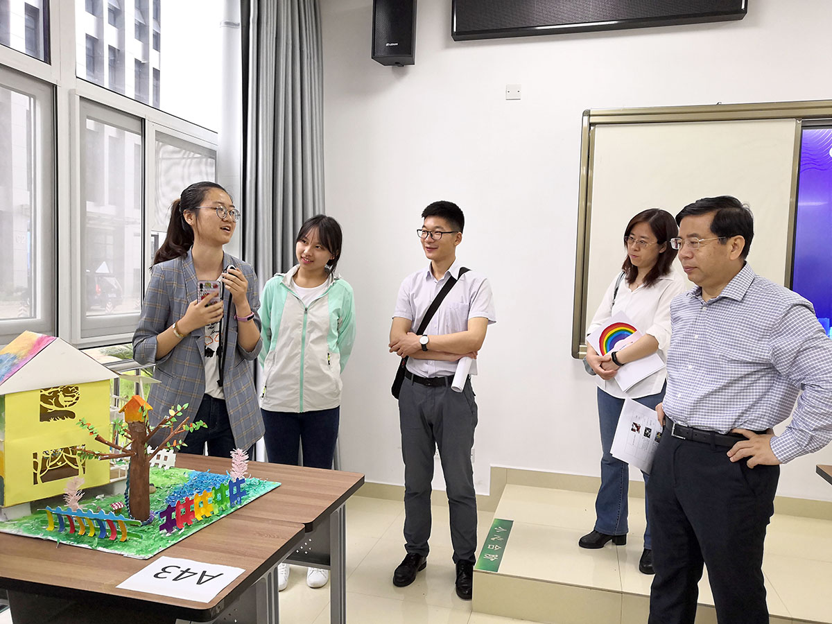 随后,嘉宾、评委老师进入美观类模型展区,聆听选手们讲解,并打分。