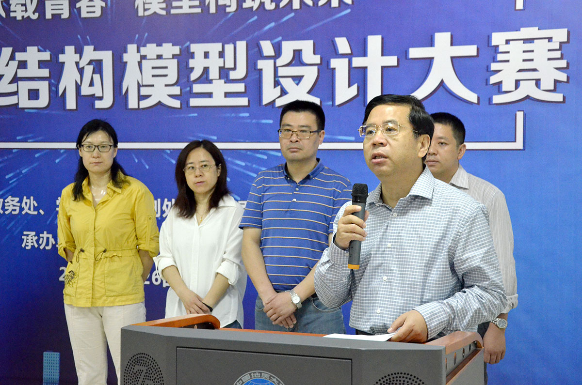 焦玉勇致开幕辞。他介绍,全国大学生结构设计竞赛是教育部确定的全国九大大学生学科竞赛之一,学院连续十四年举办结构模型设计大赛,并作为省赛暨国赛分区赛的校内选拔赛,旨在提升学生土木建筑专业知识,增强学生分析能力、设计能力、实践能力,培养学生建筑美学素养。2019年赛题更新、制作更难,他鼓励参赛团队专心致志、沉着冷静、不惧挑战,取得好成绩。