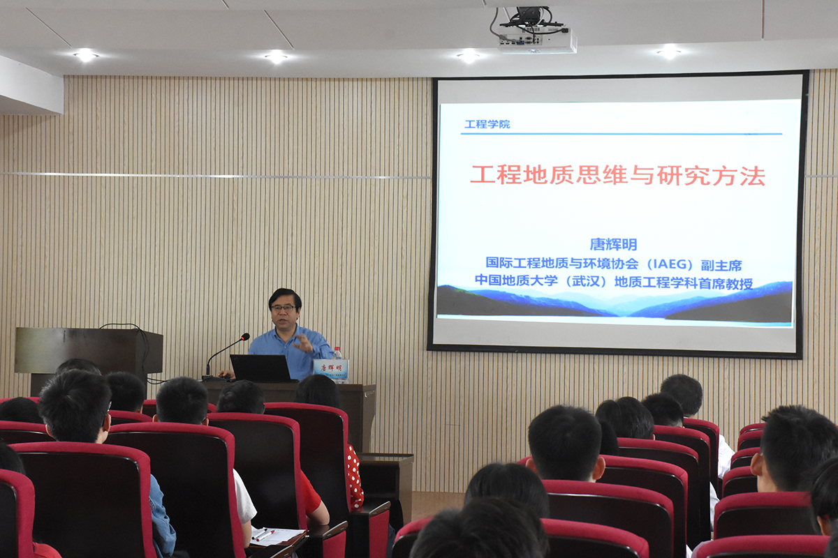 4月25日下午,一场以“读懂工程”为主题的讲座在工程楼418报告厅举行,学校党委副书记唐辉明教授围绕“工程地质思维与研究方法”,与在场工岩系150名大三学生开展对话交流。学院党委书记陈飞主持讲座。