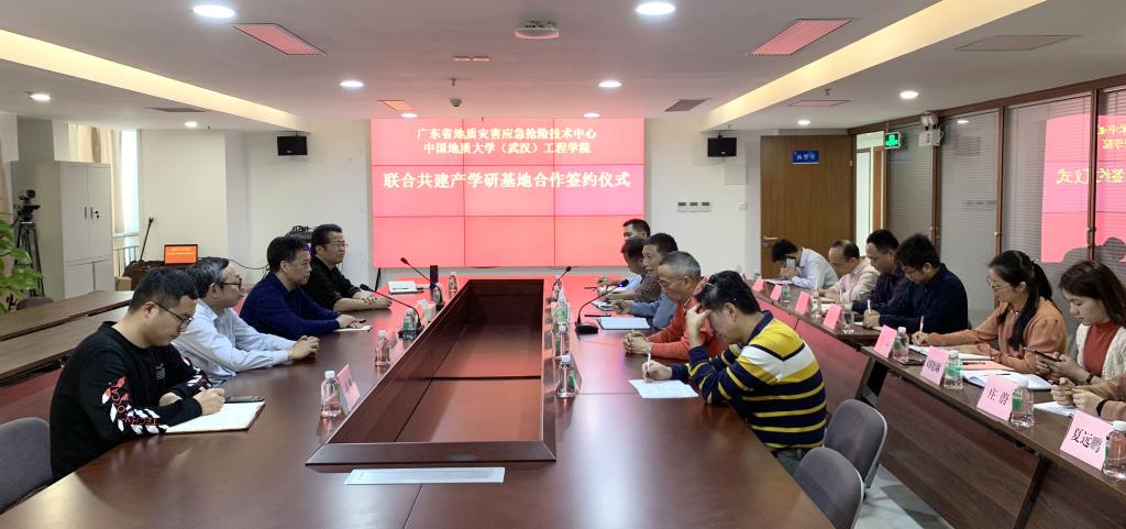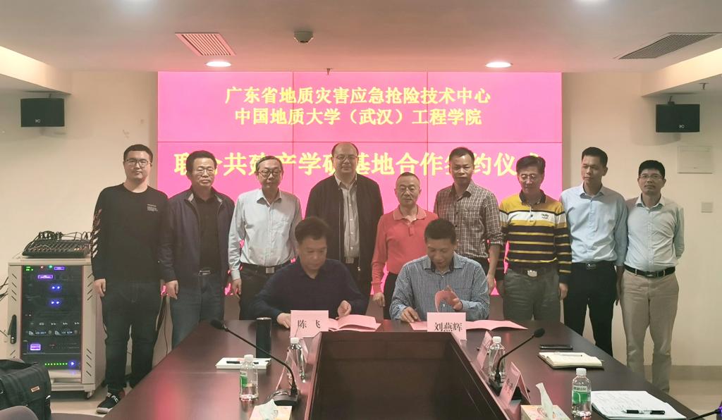 陈飞、刘燕辉签署产学研基地合作协议。根据协议,广东省地质灾害应急抢险技术中心作为必赢3003no1线路检测中心(武汉)必赢3003no1线路检测中心的产学研基地,双方将定期就人才的培训、技术的创新、引进与推广、联合攻关、学生实习等方面开展协商研究。