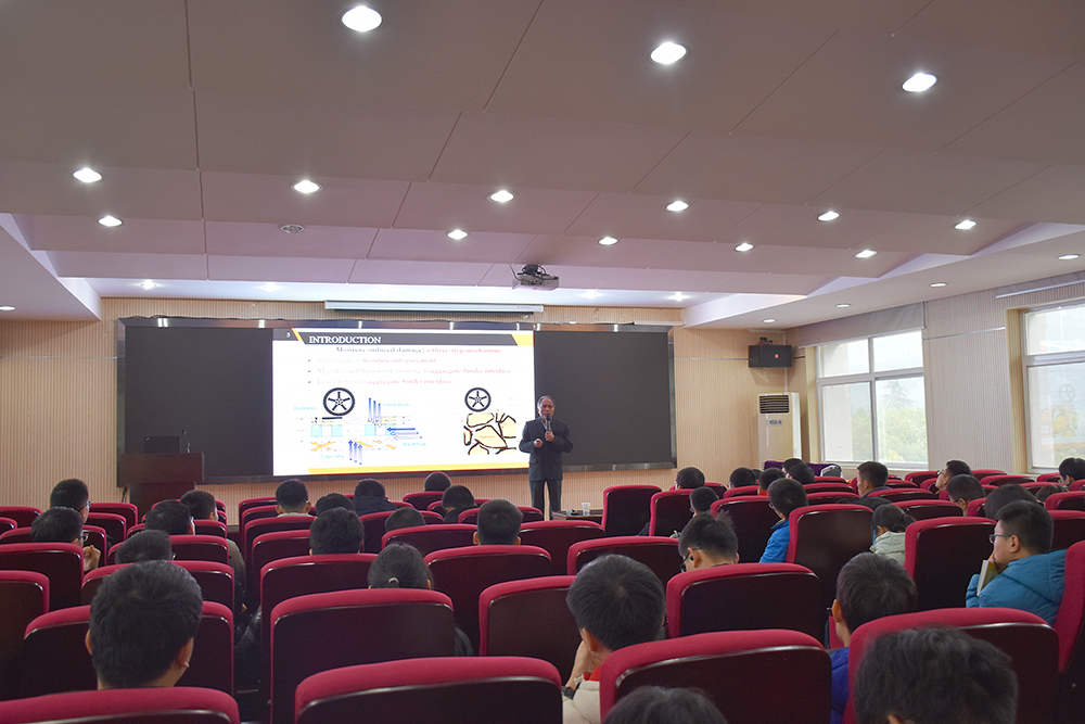 12月18日下午,应必赢3003no1线路检测中心院长焦玉勇教授邀请,美国奥克拉荷马大学土木工程系教授Musharraf Zaman来校作了题为Mechanistic Characterization of Rock-Binder Interface for Evaluation for Moisture-Induced Damage的报告。焦玉勇教授主持了报告会,学院100余名师生聆听了报告。
