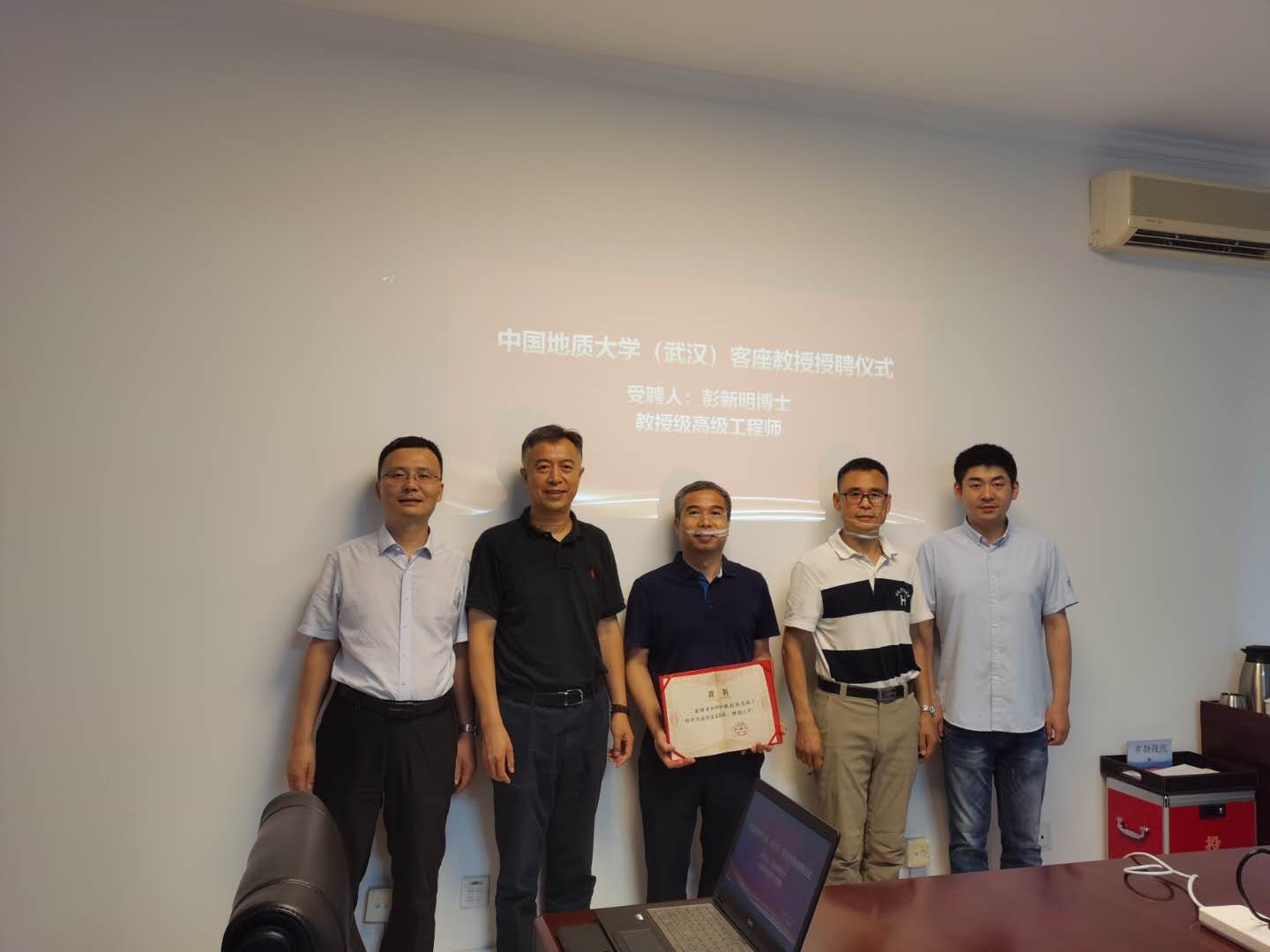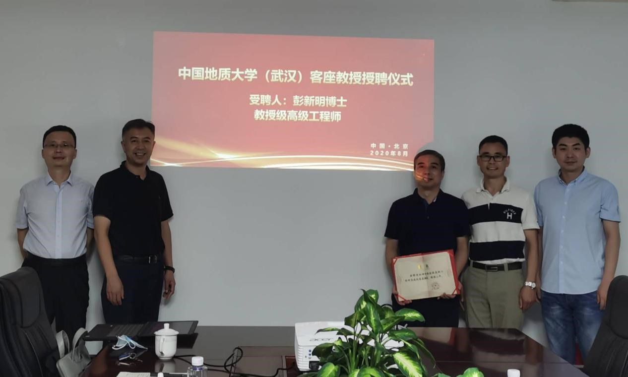 8月12日下午,必赢3003no1线路检测中心(武汉)聘请彭新明博士为客座教授的仪式在北京市地质勘察技术院217会议室举行。北京市地质勘察技术院行政负责人王立发、院副总工程师兼资源勘查中心主任彭新明及相关人员出席仪式。仪式由必赢3003no1线路检测中心副院长窦斌教授主持。