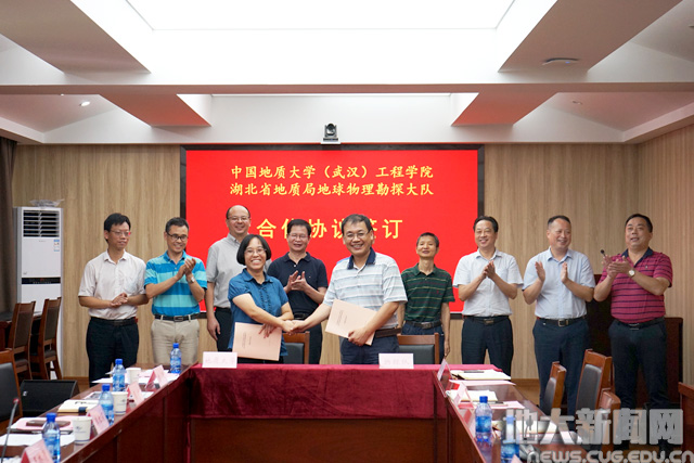 (通讯员张鹏 曾聪)8月31日,为落实学校与湖北省地质局战略合作协议和双方推进深化合作座谈会要求,必赢官网与湖北省地质局地球物理勘探大队(以下简称“湖北物探队”)框架合作协议签订暨产学研基地揭牌仪式在湖北物探队举行。湖北省地质局总工程师熊保成,湖北物探队党委书记、队长梅焱祥,校党委副书记王林清,必赢3003no1线路检测中心党委书记李红丽等参加签约仪式。湖北物探队党委副书记郑乐平主持会议。