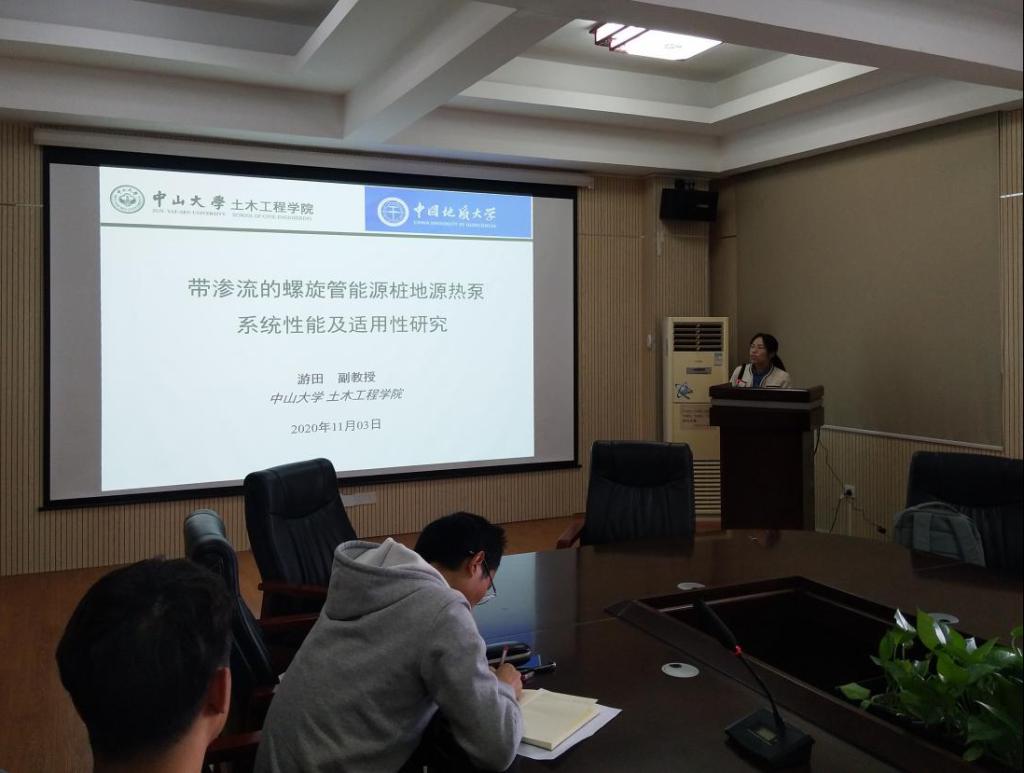 2020年11月3日下午,应必赢3003no1线路检测中心骆进副教授邀请,中山大学游田副教授作客工程文化论坛,在315会议室作了题为“带渗流的螺旋管能源桩地源热泵系统性能及其适用性研究”的学术报告。骆进副教授主持了此次论坛活动,学院50余名师生聆听了学术报告。