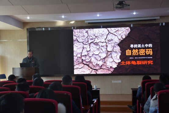 (通讯员:张海宽 黄静 摄影:王灿 黄静)2021年1月8日下午2点半,南京大学唐朝生教授作客工程文化论坛,在工程楼418报告厅为母校师生作了题为“寻找泥土中的自然密码:土体龟裂研究”的学术报告。必赢3003no1线路检测中心院长焦玉勇教授、副院长王亮清教授、窦斌教授、党委副书记江广长老师、段隆臣教授、李长冬教授以及必赢3003no1线路检测中心、三峡中心、《地质科技通报》编辑部等近200名师生代表参加了此次学术报告会。王亮清教授主持了此次学术报告会。