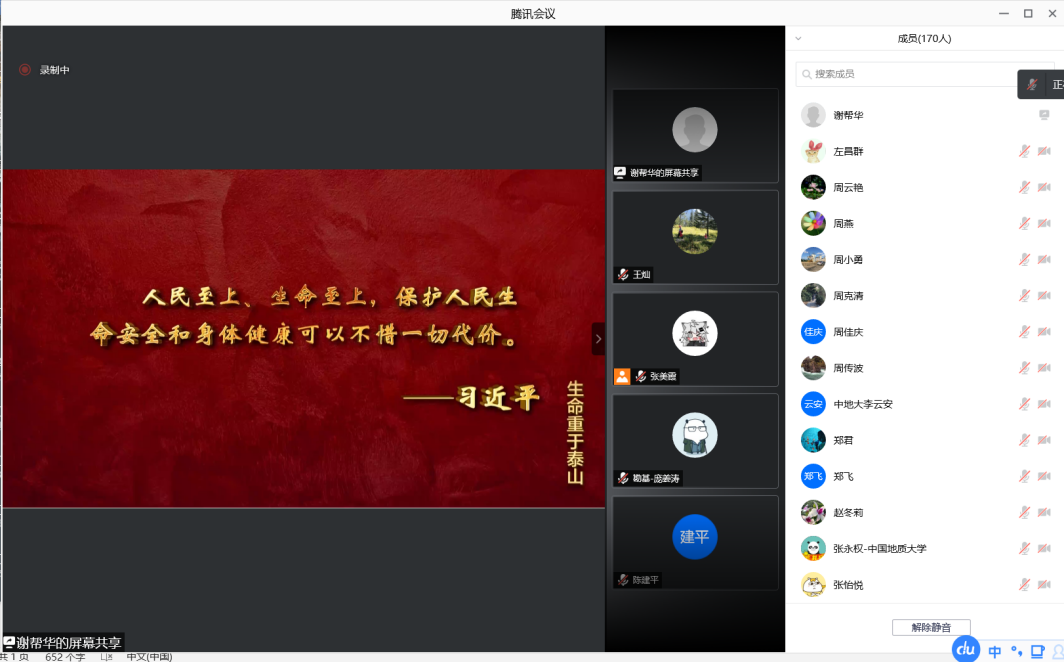 (通讯员:张美霞 王灿)为积极应对近期新冠肺炎疫情趋向复杂的严峻形势,进一步筑牢疫情防控的安全防线,推进学院中心工作的顺利进行,2021年8月3日下午,必赢3003no1线路检测中心按照学校关于新冠肺炎疫情防控的通知要求,紧急召开全体教职工线上工作布置会,传达学校近期关于疫情防控精神及暑期教育教学工作的会议精神,并集中学习了习近平总书记关于安全生产的重要论述。会议由院长焦玉勇主持,学院党政领导班子及教职工共计178人参加了线上会议。