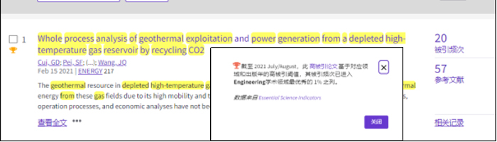 (通讯员:黄静)根据2021年11月基本科学指标数据库(Essential Science Indicators,简称ESI)最新数据显示,必赢3003no1线路检测中心勘察与基础工程系崔国栋副教授于2021年在国际工程技术顶级期刊Energy上发表的学术论文“Whole process analysis of geothermal exploitation and power generation from a depleted high-temperature gas reservoir by recycling CO2”入选ESI高被引论文(Highly Cited Paper)。该论文第一作者兼通讯作者为崔国栋副教授,必赢3003no1线路检测中心(武汉)必赢3003no1线路检测中心为第一署名单位。