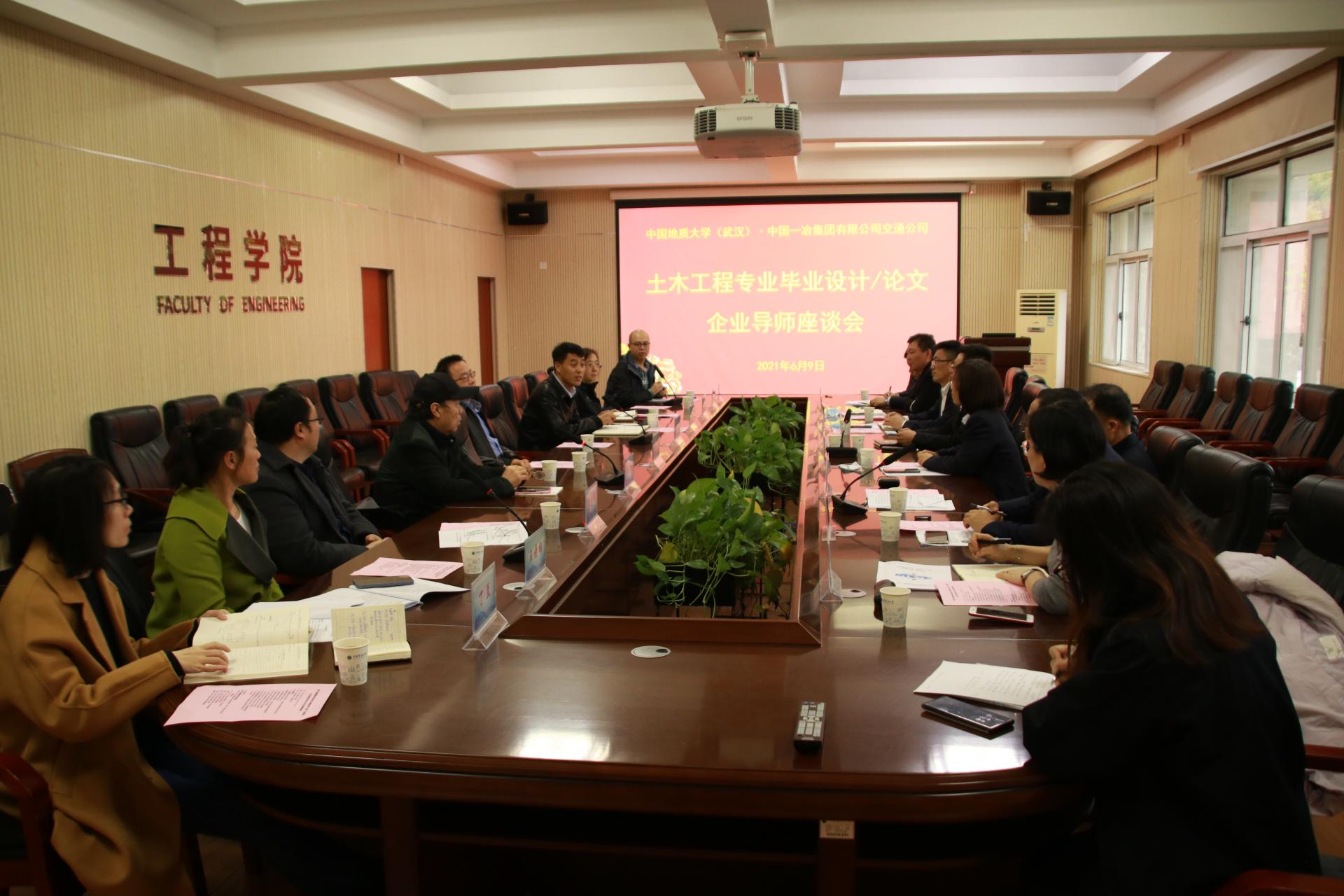 (通讯员 李雪平)2022年3月17日下午,由中国一冶集团有限公司总经理助理、一冶集团交通公司总经理、党委副书记、必赢官网97届校友焦玉俊和一冶集团交通公司党委书记、副总经理徐诉率队,一行7人组成的专家团队,参加了必赢3003no1线路检测中心举行的“中国一冶集团有限公司交通公司—必赢3003no1线路检测中心(武汉)必赢3003no1线路检测中心土木工程专业毕业设计/论文企业导师座谈会”。院长焦玉勇、党委副书记高晓东、学校教学督导员姚爱国以及土木工程与力学系、地下空间工程系教师代表和学生代表共12人参加了此次会议。会议由高晓东副书记主持。