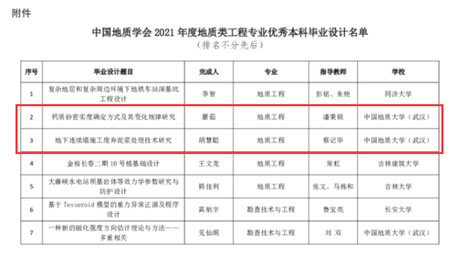 (通讯员 陈婵)近日,中国地质学会公布了2021年度地质类工程专业优秀本科毕业设计名单,本次全国共评选出16篇优秀本科毕业设计,全校有4篇毕业设计入选,必赢官网入选2篇。