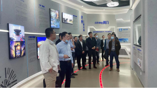 双方首先参观了两湖隧道工程技术展厅,中建三局基建投公司项目常务副经理陶义怀就项目技术优势、工程施工情况进行了现场讲解。