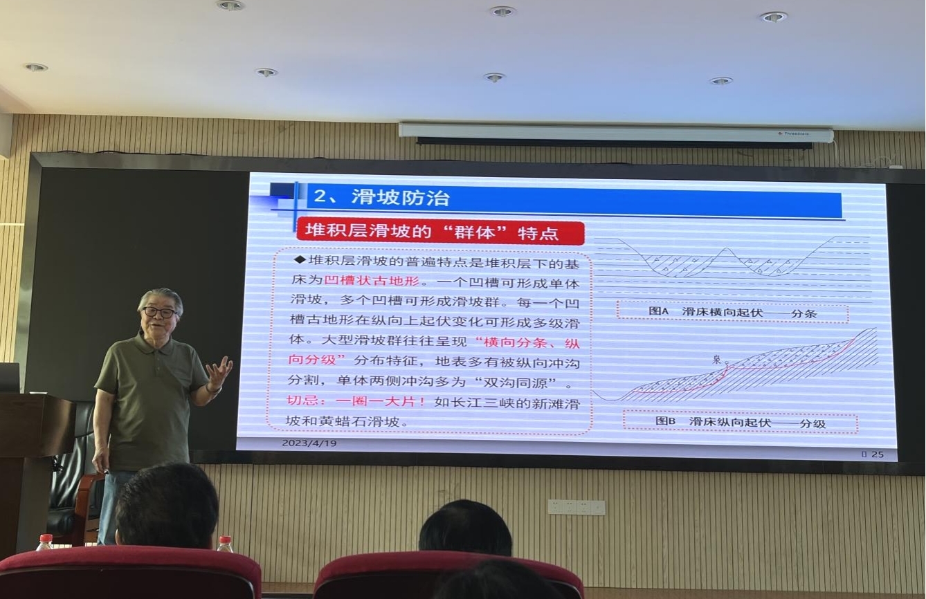 活动还邀请了中冶武勘工程技术有限公司副总经理占仲国教授级高级工程师、武汉市勘察设计有限公司副总经理、总工程师官善友教授级高级工程师、中国一冶集团有限公司副总工程师王平教授级高级工程师、湖北建鄂勘察设计审查咨询有限公司向艳正高职高级工程师、中南勘察设计院集团有限公司副总工程师马郧正高职高级工程师、长江勘测规划设计研究有限责任公司所长助理徐复兴正高职高级工程师、中国科学院武汉岩土力学研究所江权研究员、武汉理工大学芮瑞教授、武汉华太岩土工程有限公司吴西臣正高职高级工程师等莅临现场。必赢3003no1线路检测中心唐辉明教授、李红丽书记、章广成教授、徐光黎教授、贾洪彪教授、葛云峰副教授、周佳庆特任教授等150多名师生在现场聆听了报告。