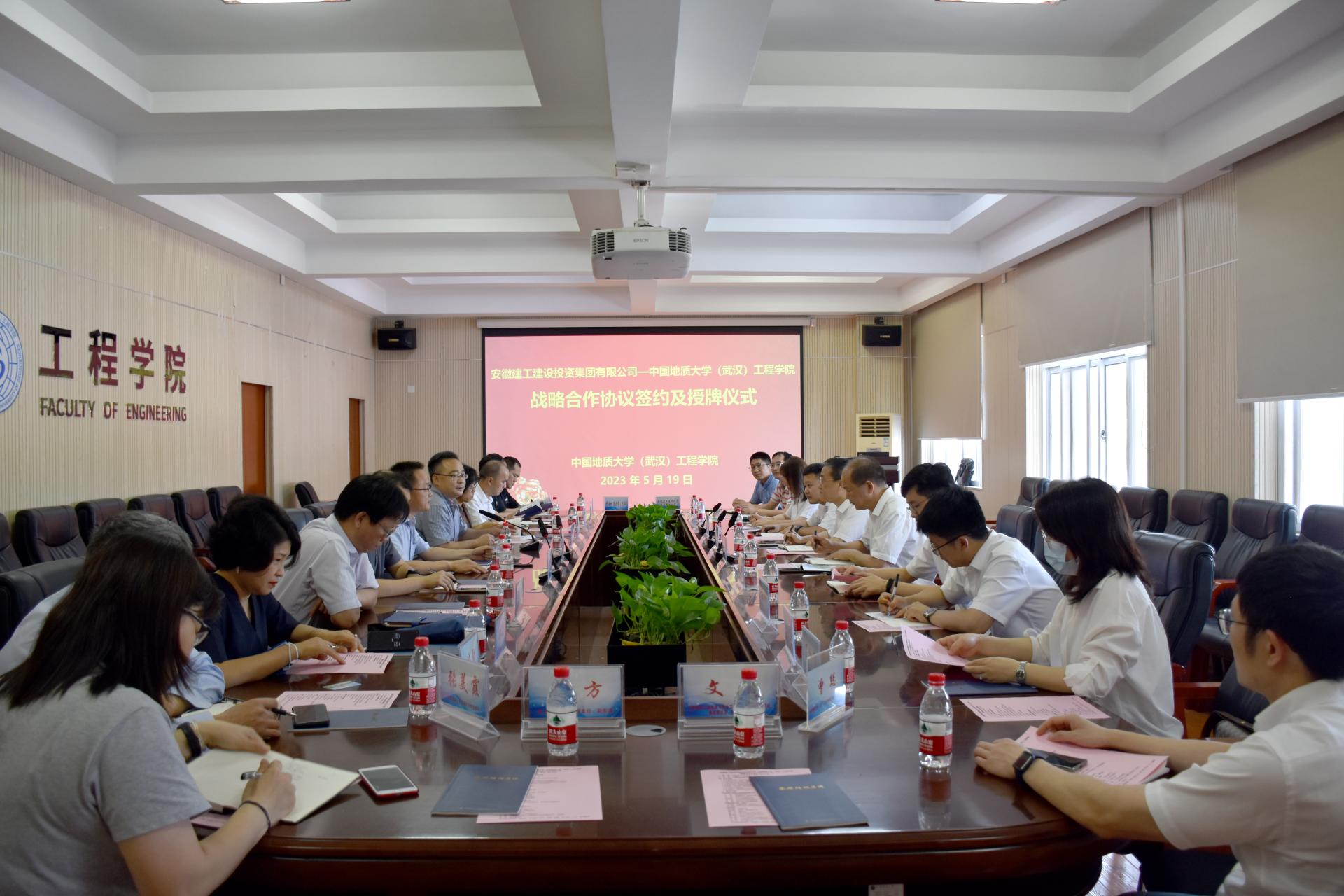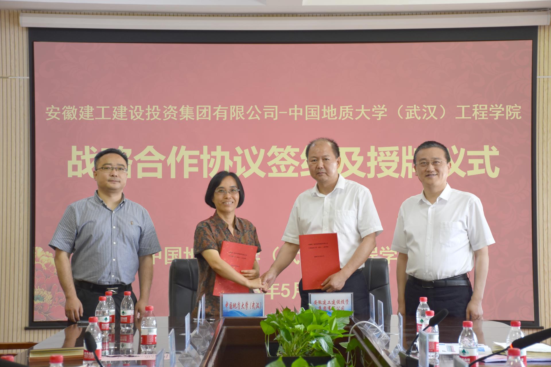 (通讯员 张美霞 王灿 冯焱 )5月19日,必赢官网与安徽建工建设投资集团有限公司(以下简称:建设投资集团)签署战略合作协议。建设投资集团副书记干戈,党委委员、副总经理、总工程师陈莘,必赢官网党委常委、副校长王力哲,校友与社会合作处副处长、深圳研究院副院长王强,我院党委书记李红丽,党委副书记、院长焦玉勇,副院长章广成及双方相关人员参加合作座谈会和签约仪式。李红丽主持会议。