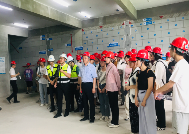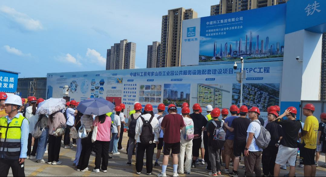 中建科工华中大区人力资源部招聘经理潘琨等对焦院长师生一行表示热烈欢迎,并陪同师生参观了大区陈列室、钢结构制造厂、检测中心和中建科工蔡甸区奓山街工业园公共服务设施配套建设五期项目。华中大区综合办公室讲解员全雨晴为师生介绍陈列室的钢结构模型和科工精品工程,中建钢构武汉有限公司一车间工段长刑宜对钢结构制作进行了详细的讲解,奓山五期项目项目经理高杰对装配式混凝土结构和装配式钢结构建筑安装施工技术进行了分享。