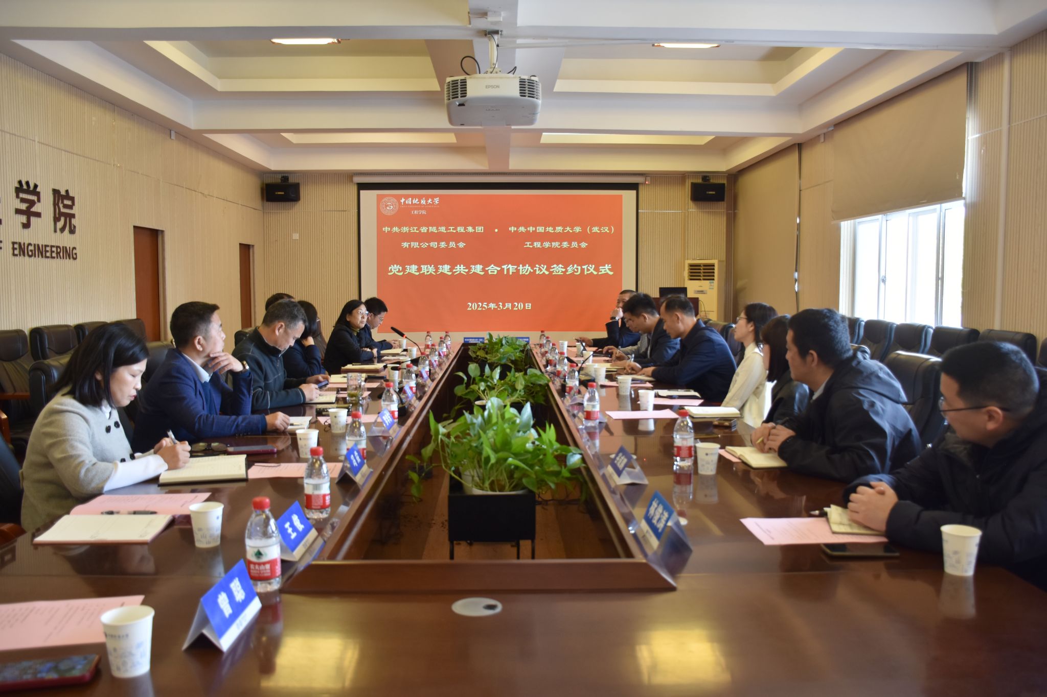 (通讯员 黄燕)为深入贯彻落实党的二十大和党的二十届三中全会精神,贯彻落实全国两会精神,进一步推动党建与业务深度融合,加强校企合作,实现资源共享、优势互补,2025年3月20日,必赢3003no1线路检测中心与浙江省隧道工程集团有限公司在必赢3003no1线路检测中心会议室就党建联建、人才培养、科研创新等方面开展座谈交流并签署党建联建共建合作协议。浙江省隧道工程集团有限公司党委书记、董事长、总经理李桂来,党委副书记、董事、工会主席谢常才,党委委员、总会计师张赛花,必赢3003no1线路检测中心党委书记李红丽,党委副书记、院长王亮清,党委委员、副院长窦斌,副院长倪晓阳,学术副院长吴文兵,双方相关人员参加会议。李红丽主持会议。