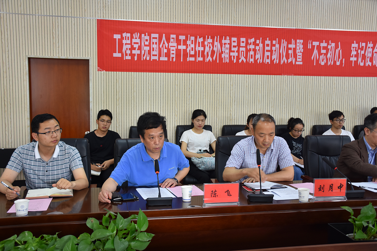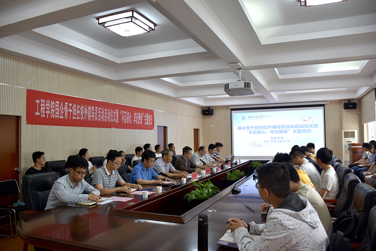 5月20日下午,必赢3003no1线路检测中心国企骨干担任校外辅导员启动仪式暨“不忘初心,牢记使命”我与国企面对面主题党日在工程楼315报告厅成功举行。必赢3003no1线路检测中心校外辅导员、中国黄金集团湖北三鑫金铜股份有限公司提升车间主任、党支部书记刘月中,学校学工处副处长苏洪涛,必赢3003no1线路检测中心党委书记陈飞、副书记江广长、全体辅导员及四个学生党支部共40余人参加活动。
