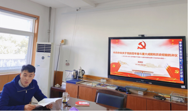 主题学习阶段,高晓东副书记精心制作了PPT课件,带领大家深入学习了中国共产党第十九届中央委员会第六次全体会议精神。全会听取和讨论了习近平受中央政治局委托作的工作报告,审议通过了《中共中央关于党的百年奋斗重大成就和历史经验的决议》和《关于召开党的第二十次全国代表大会的决议》。习近平就《中共中央关于党的百年奋斗重大成就和历史经验的决议(讨论稿)》向全会作了说明。高晓东副书记详细解读了《中共中央关于党的百年奋斗重大成就和历史经验的决议》的背景、意义、框架内容和学习要点。决议具有里程碑意义的重要文献,站在党的立场,人民的立场,时代的高度,从“四个历史时期”的时间维度肯定百年奋斗的伟大成就,明确了“四个主要任务”,肯定了“四次伟大飞跃”,总结了“十大历史经验”,对党十八大后“中国特色社会主义新时代”时期予以浓墨重彩。决议实事求是、尊重历史,坚持辩证唯物主义,体现马克思主义中国化的创新飞跃发展,明确了习近平新时代中国特色社会主义思想就是我党带领全国各族人民群众实现中华民族伟大复兴的行动指南。高晓东副书记要求支部全体党员会后精读《中共中央关于党的百年奋斗重大成就和历史经验的决议》及相关文件,深刻领会第十九届中央委员会第六次全体会议精神。