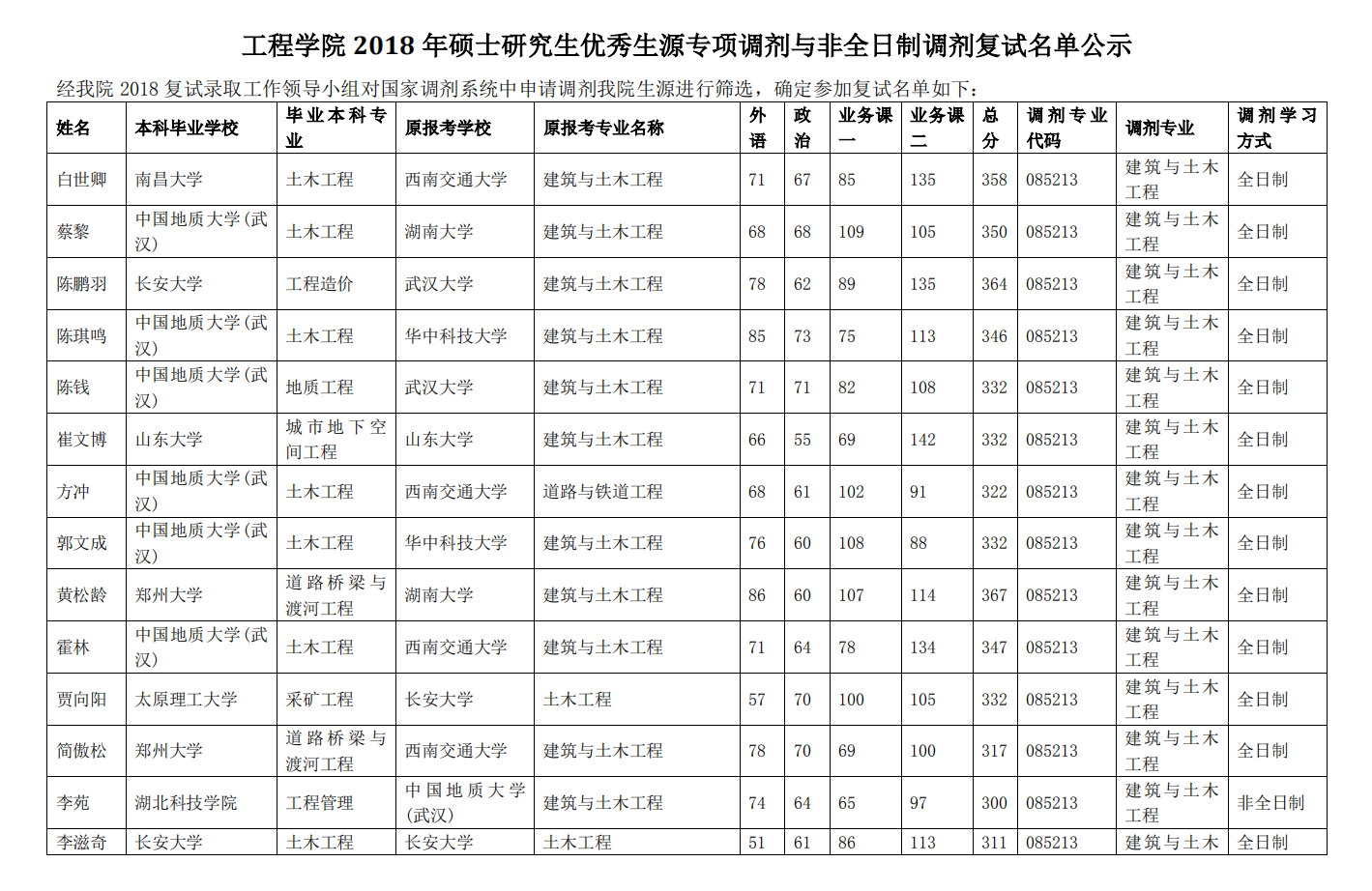 必赢3003no1线路检测中心 2018 年硕士研究生优秀生源专项调剂与非全日制调剂复试名单公示