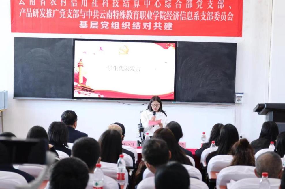 正值学雷锋纪念日60周年之际,为更好弘扬雷锋精神,加强基层党支部建设,引领学生成长,贯彻落实“三全育人”理念,推动高职院校与地方企业基层党建融合,2023年3月2日下午,中共云南省农村信用社科技结算中心综合部党支部、中共云南省农村信用社产品研发推广党支部与中共beat365英国官方网站经济信息系党支部举办了基层党组织结对共建活动暨经济信息系党支部主题党日活动。出席本次活动的有云南省农村信用社综合部党支部书记盛严立同志以及全体党员、经济信息系党支部副书记王小川同志以及全体党员、入党积极分子以及部分学生代表,石安银副书记作为特邀嘉宾出席活动。