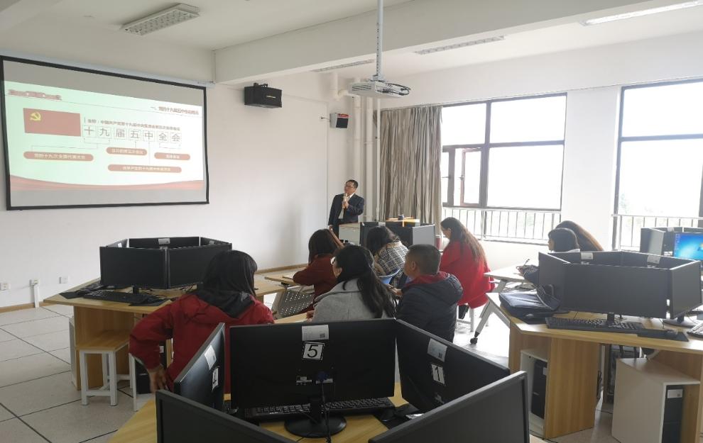 为学习贯彻好党的十九届五中全会精神,2020年11月30日,beat365英国官方网站经济信息系直属党支部组织全体党员在实训楼206开展专题党课,支部书记王小川同志以“学习党的十九届五中全会精神”为题讲授专题党课,全体党员、入党积极分子参加了学习。
