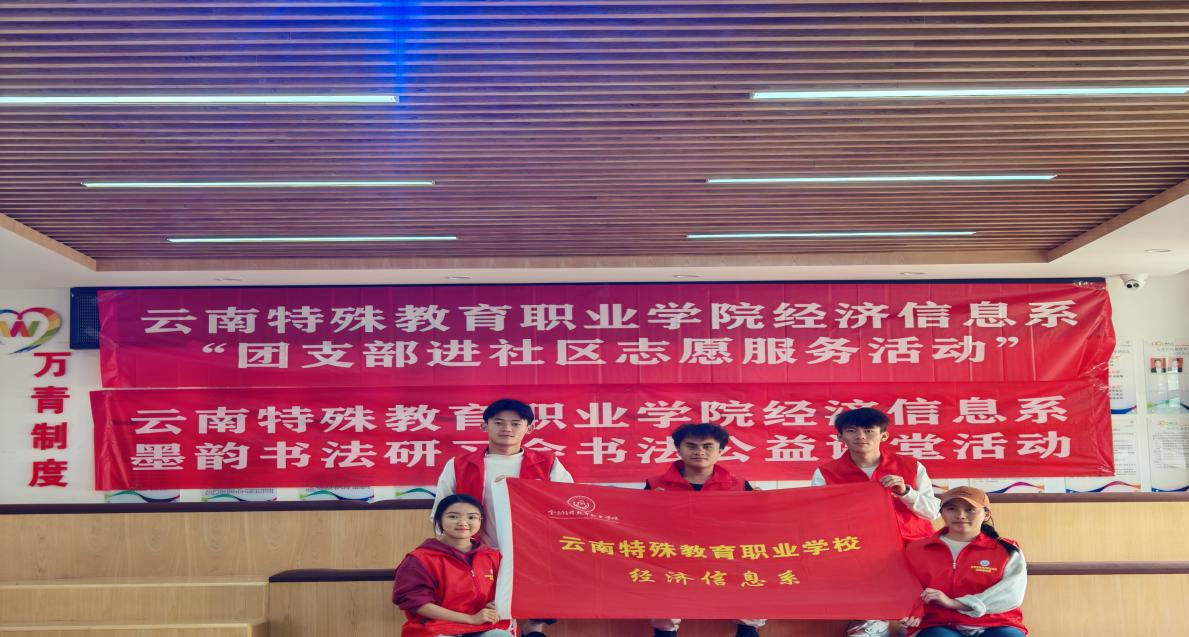 为深入贯彻党的二十大精神,将“文化自信”战略更好地落实到实践中。4月 20日上午,由经济信息系团总支主办,经济信息系墨韵书法研习会承办的“翰墨有传承,校地同共建”书法公益课堂活动在实力锦城万青社区居民委员会正式开展,经济信息系书法兴趣小组组长任安箭及小组成员陶文香、曾麟杰、彭民龙、祝选春五位同学和社区小朋友及陪同家长共同参与了本次活动。