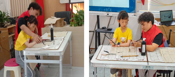 本次活动共分为三个部分进行开展,前半段为书法基础常识讲解,中间部分为实操教学,后半段为参与活动的小朋友书写书法纪念品。课程时间安排科学合理,能够让小朋友及家长更好地体验到书法课堂的丰富精彩。