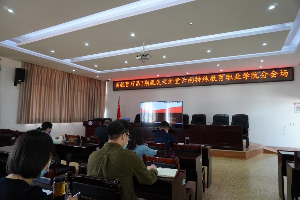 “五四”青年节即将到来之际,省教育厅为深入推进“清廉机关”“清廉校园”的建设,从严从实加强对年轻干部的教育管理监督,形成崇廉尚廉的良好风尚,不断激发干事创业,跨越奋进的精气神,4月29日上午,省教育厅组织开展2022年第3期云南教育廉政大讲堂,beat365在诵弦楼大会议室设立分会场,院领导及“80后”科级干部参加会议。