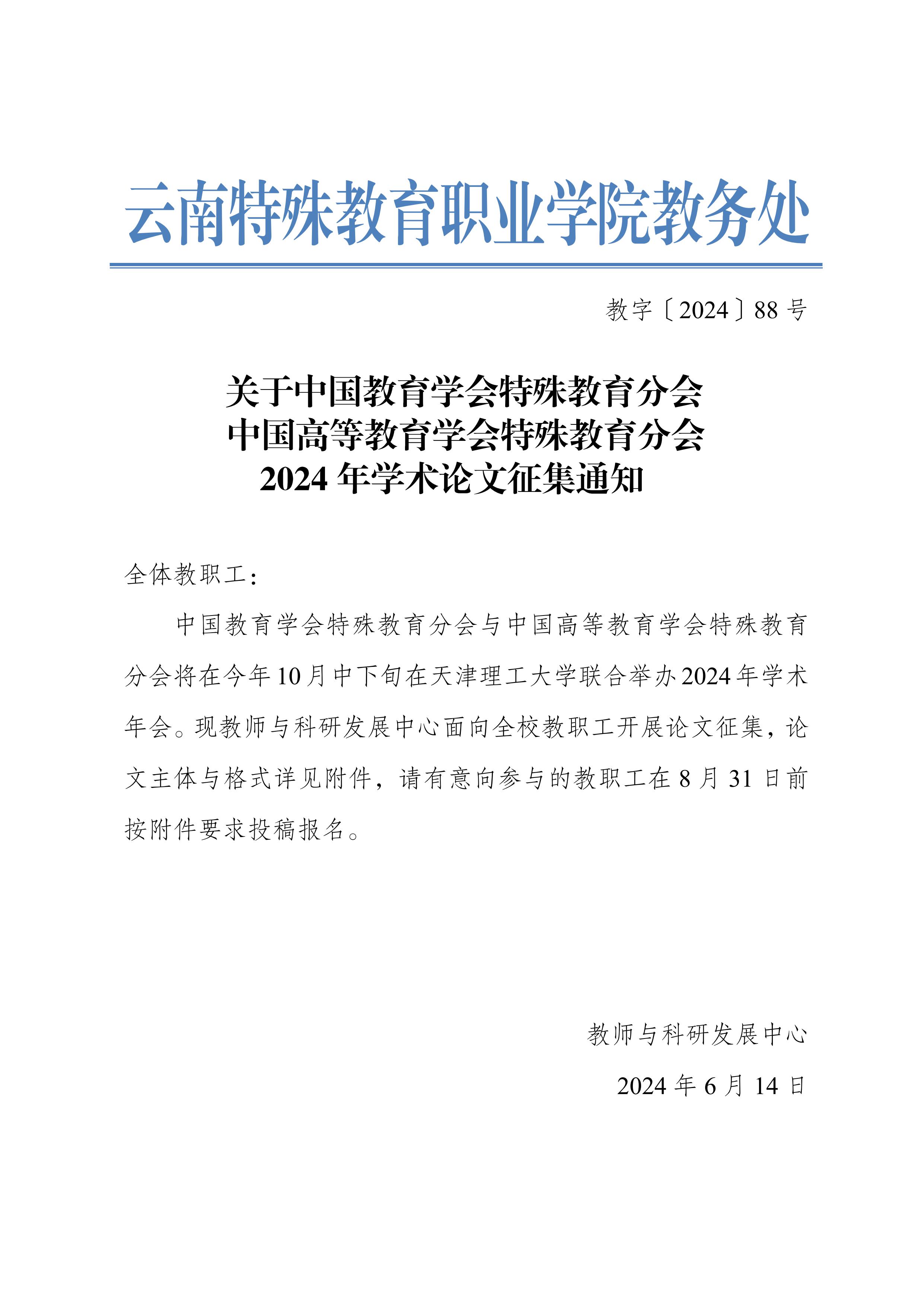 关于中国教育学会特殊教育分会中国高等教育学会特殊教育分会2024年学术论文征集的通知