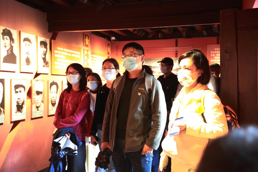 在前往柯渡纪念馆的大巴车上,参加本次主题教育实践活动的全体党员集体晨读《我的祖国》爱国诗,放声齐唱《没有共产党就没有新中国》《我和我的祖国》等经典红歌,用质朴的方式表达了对党的热爱与忠诚。在柯渡红军纪念馆工作人员的讲解下,支部党员们详细聆听了红军长征的艰辛历程,参观了中央红军总部长征驻地旧址,总参谋部作战室,毛泽东、周恩来、朱德、刘伯承等老一辈革命家长征路居丹桂村的休息室及烈士遗物。看着厅内红军长征途中留下的一件件文物,一张张图片,难掩沧桑古朴,都记述着红军长征中的感人故事;聆听着红军长征驻扎柯渡的革命历史故事,党员们深切感受到“红军不怕远征难,万水千山只等闲”的豪迈气概,身临其境地重走了一次红军长征路。重走长征路,使大家切身融入“渡江令”发布时的场景,回顾了红军长征路上不朽的印记,被红军战士坚韧不拔、团结战斗的顽强意志和革命精神深深震撼。随后,在纪念馆内,全体党员举起右手,面对党旗庄严宣誓,重温入党誓词。