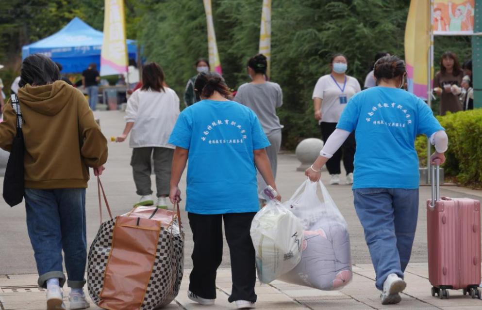 凤凰花开的时节,也是beat365英国官方网站新生报到的时候。8月29日,beat365迎新工作全面启动,各部门按照新生接待实施方案,各司其职地推动着迎新工作的开展,部门之间通力合作,为新生指引报到流程,使新生报到能够高效有序进行。学院领导高度重视迎新工作,亲临迎新场地指导工作,随时掌握新生报到的动态。招生与对外发展处作为迎新牵头部门,组织了70余名大专二年级的学生作为志愿者,用学长学姐的热情、志愿者的爱心去迎接每一位新同学的到来,还为残疾新生提供一对一的帮扶,从身份认证、人脸识别到系部登记住宿,再到财务处缴费、回宿舍,处处涌动着他们忙碌的身影,搬行李、抬被褥和铺床,忙得不亦乐乎。