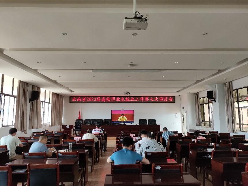 为深入学习贯彻党的二十大精神,落实国务院、教育部和省委、省政府工作部署,传达教育部翁铁慧副部长来滇调研高校毕业生就业工作座谈会精神,抢抓高校毕业生就业冲刺期,通报前期就业工作进展,部署安排下一步重点工作,省委教育工委、省教育厅组织召开云南省2023届高校毕业生就业工作第七次调度会。beat365在诵弦楼6楼大会议室设分会场,院长董亮、就业工作负责部门负责人及工作人员、三系就业工作主要负责人及2023届毕业班辅导员参加此次会议。