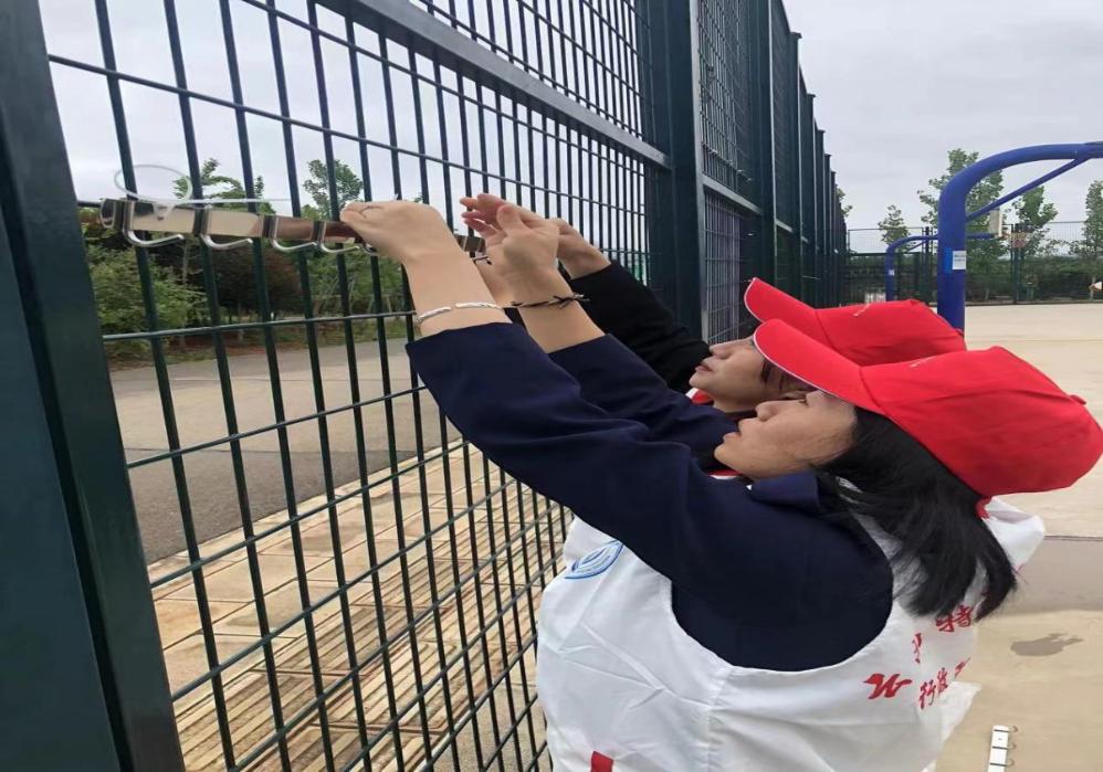 本次活动,以“我为群众办实事”为基调,改善学生因在篮球场开展室外运动时基础设施不完善,没有地方可以置放衣物导致学生外套放置地上或塞入铁丝网中的情况。行政第一党支部全体党员众筹购买置物挂钩,并在学院篮球场进行安装。
