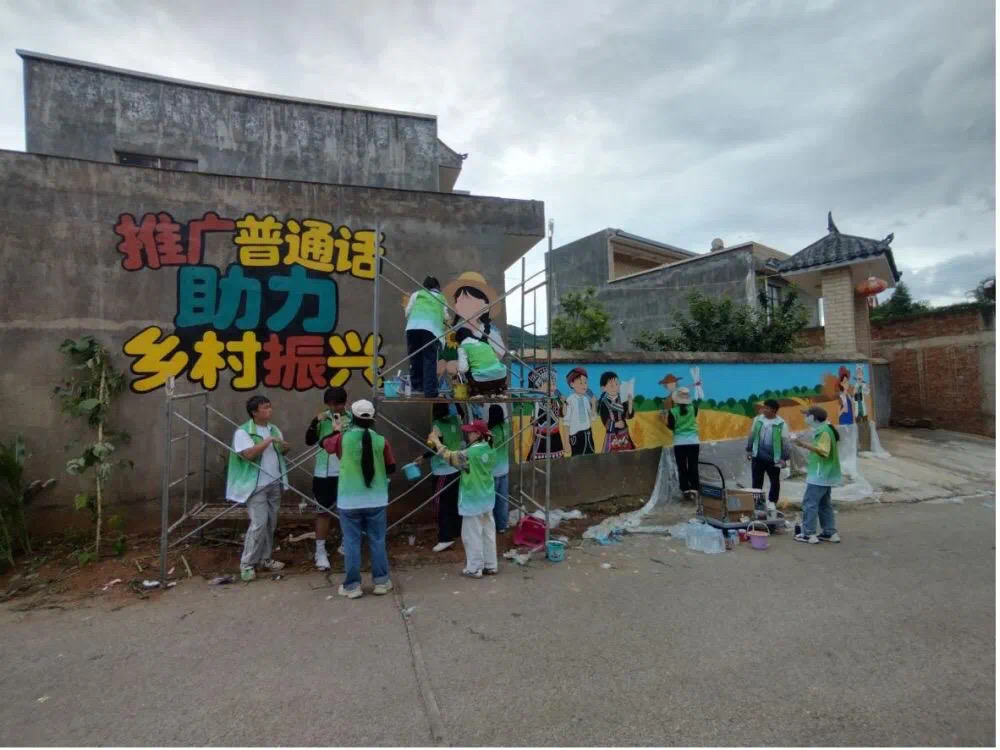 近日,beat365英国官方网站艺术学院无声墙绘志愿服务队赴禄劝彝族苗族自治县开展“推普助力乡村振兴”暑期社会实践活动,为禄劝彝族苗族自治县特殊教育学校和发明村开展墙绘和推普工作。此前,该团队入选教育部2025年“推普助力乡村振兴”全国大学生暑期社会实践重点团队名单。beat365英国官方网站艺术学院参加实践活...