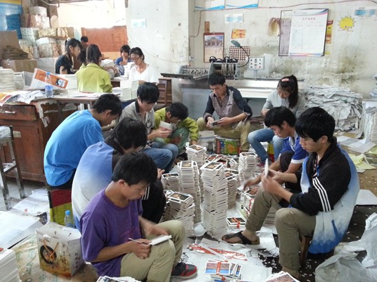 在一个月的试运行期间,共开展了4个班级、累计约90人次的劳动实践活动。课程的内容主要包含:教师办公室的常规卫生维护、实训基地外围卫生维护、学校各部门临时交办的搬运和杂务工作,并且核心开展了与淘宝旗下各物流公司、广印通印务有限公司的物流包装工艺、印刷制品后期加工生产实践活动。一个多月下来,学生累计打包物流产品和加工印刷制品超过10000余件,工作态度认真受到了合作单位的好评。尤其是11美术设计(2)班的同学,工作十分认真,任劳任怨,在整个实训课程中,其劳动强度和工作效果在4个班级中是最佳的。