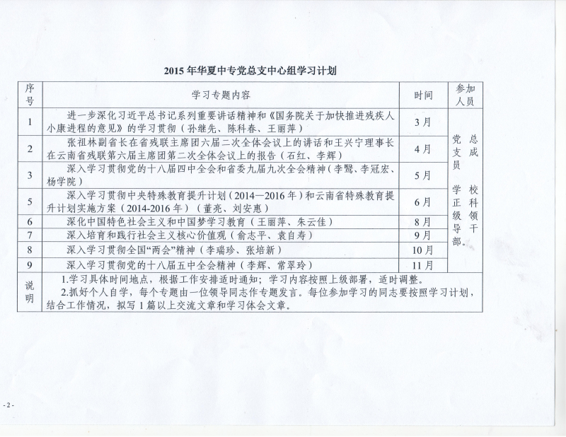2015年华夏中专党总支中心组学习...