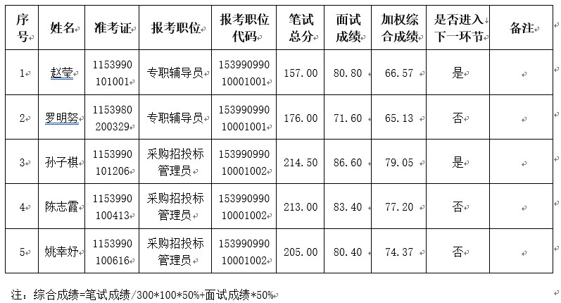 根据《云南省事业单位公开招聘工作人员办法》(云人社发〔2016〕182号)和《beat365英国官方网站2022年公开招聘工作人员公告》有关规定,经笔试、面试,现将综合成绩公示如下:
