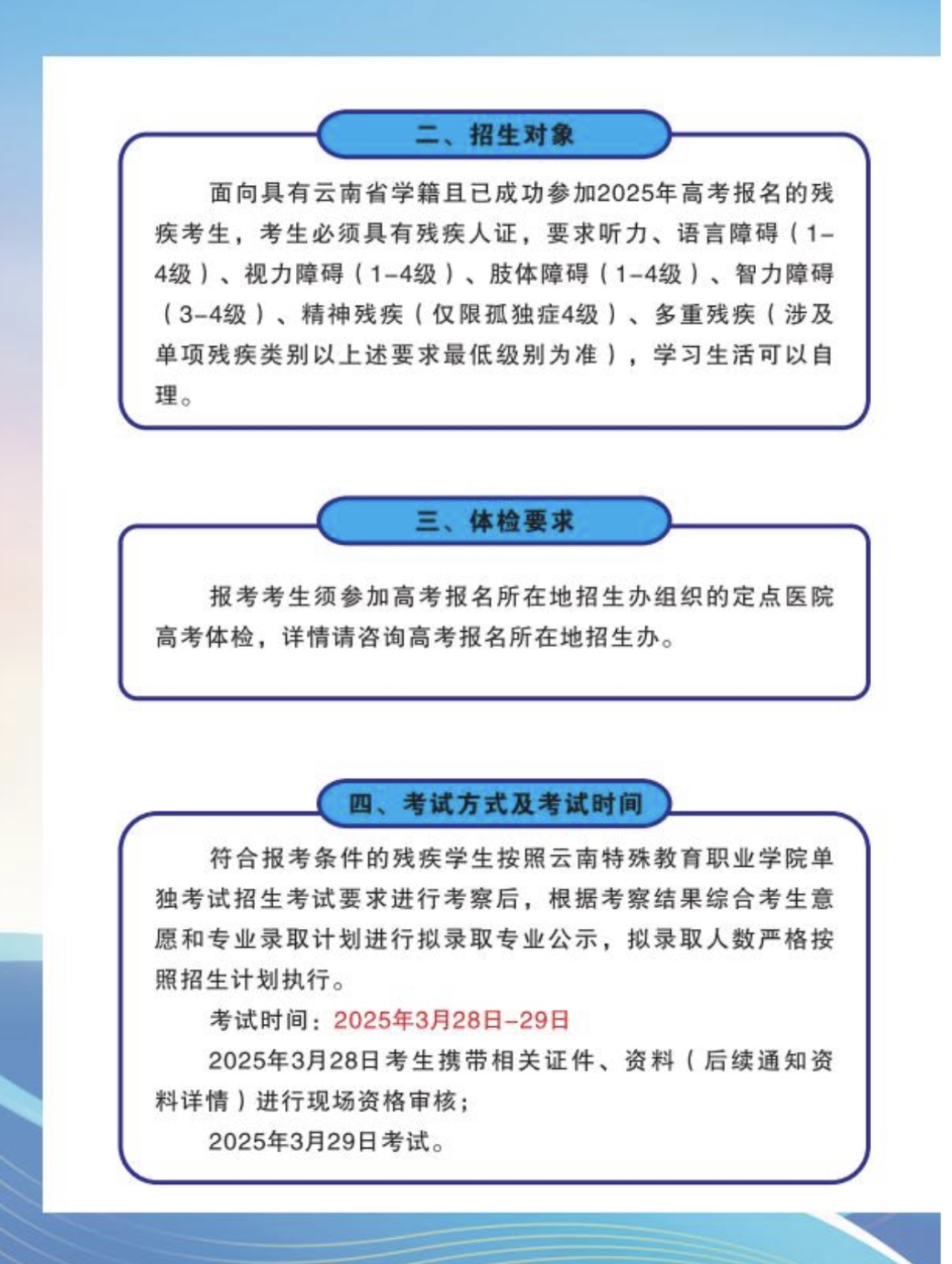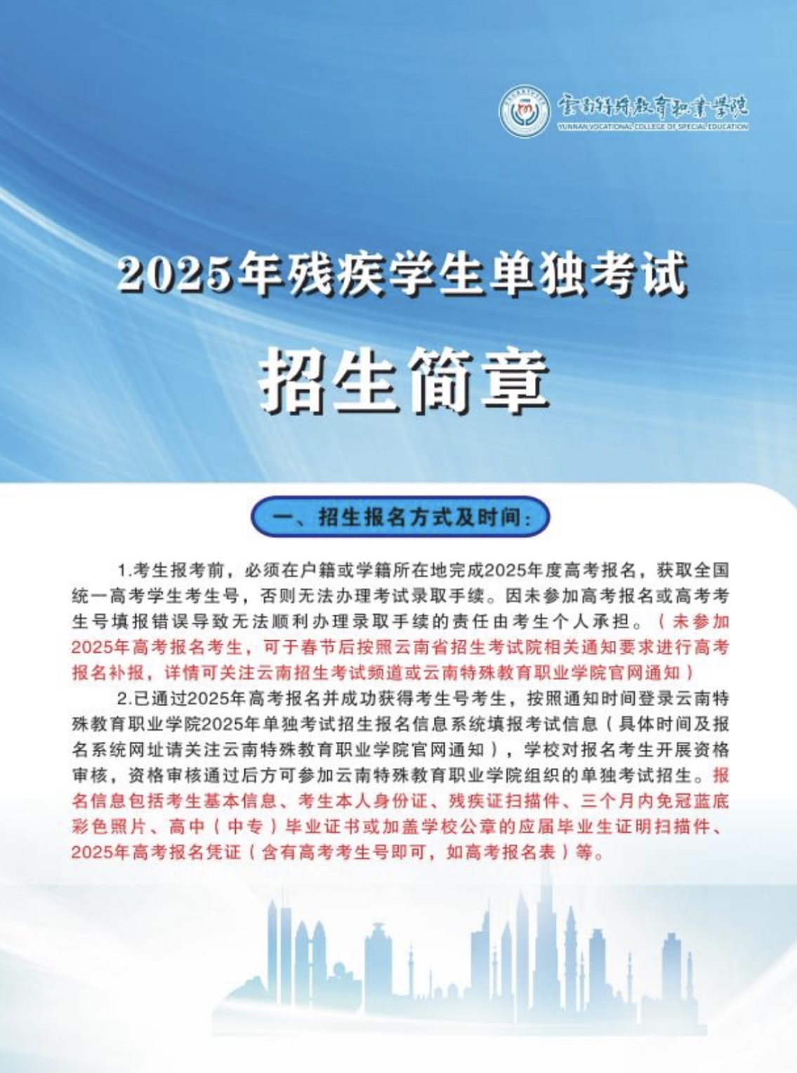 2025年残疾学生单独考试招生简章