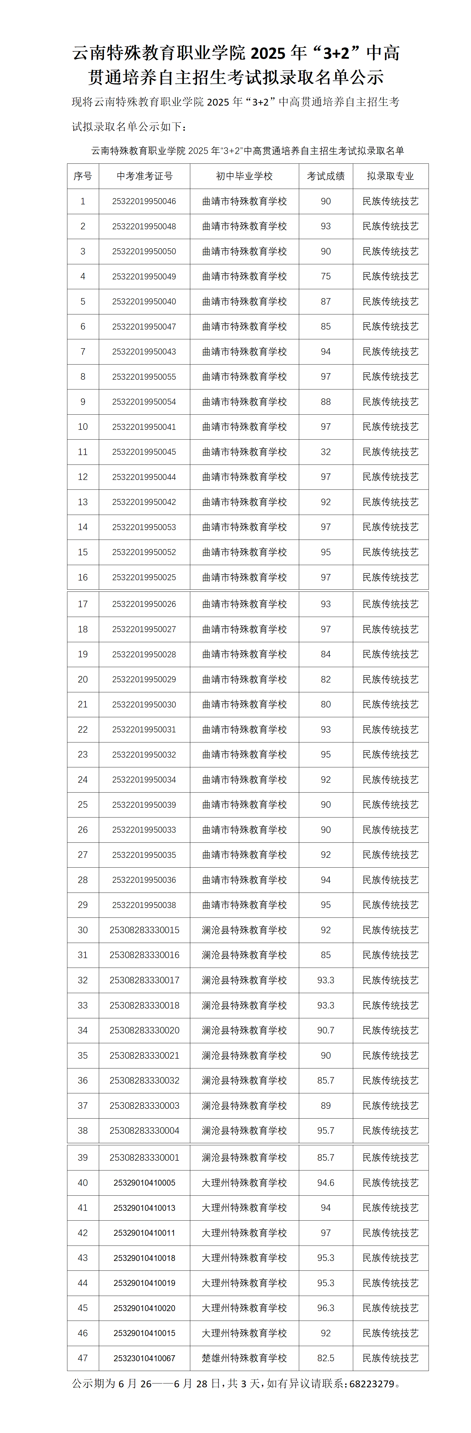 beat365英国官方网站2025年“3+2”中高贯通培养自主招生考试拟录取名单公示