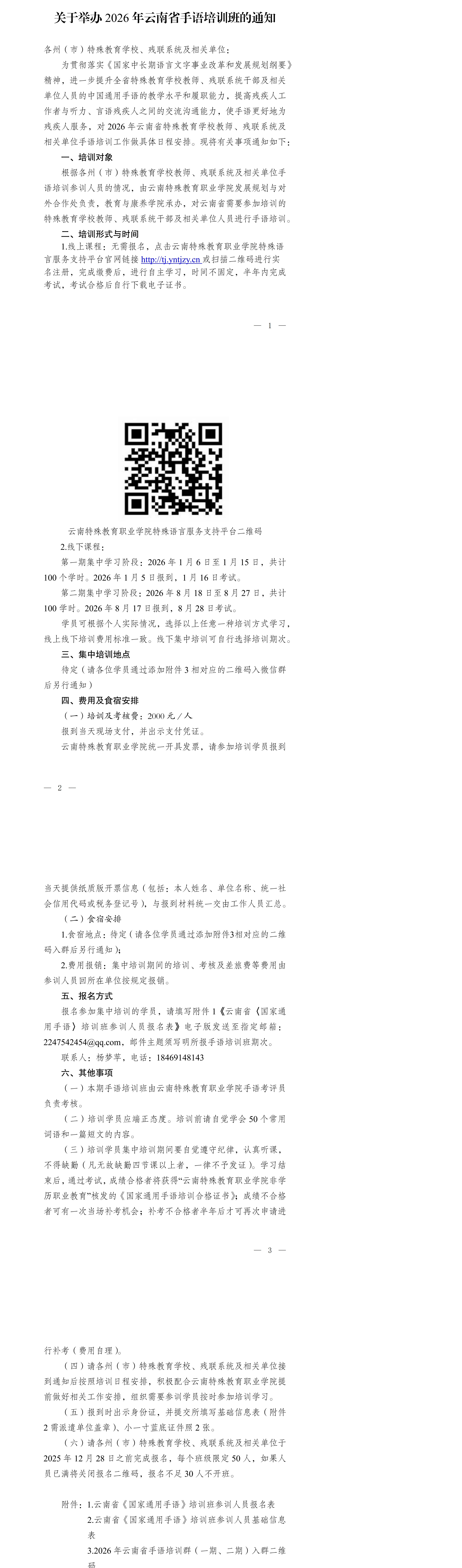 关于举办2026年云南省手语培训班的通知