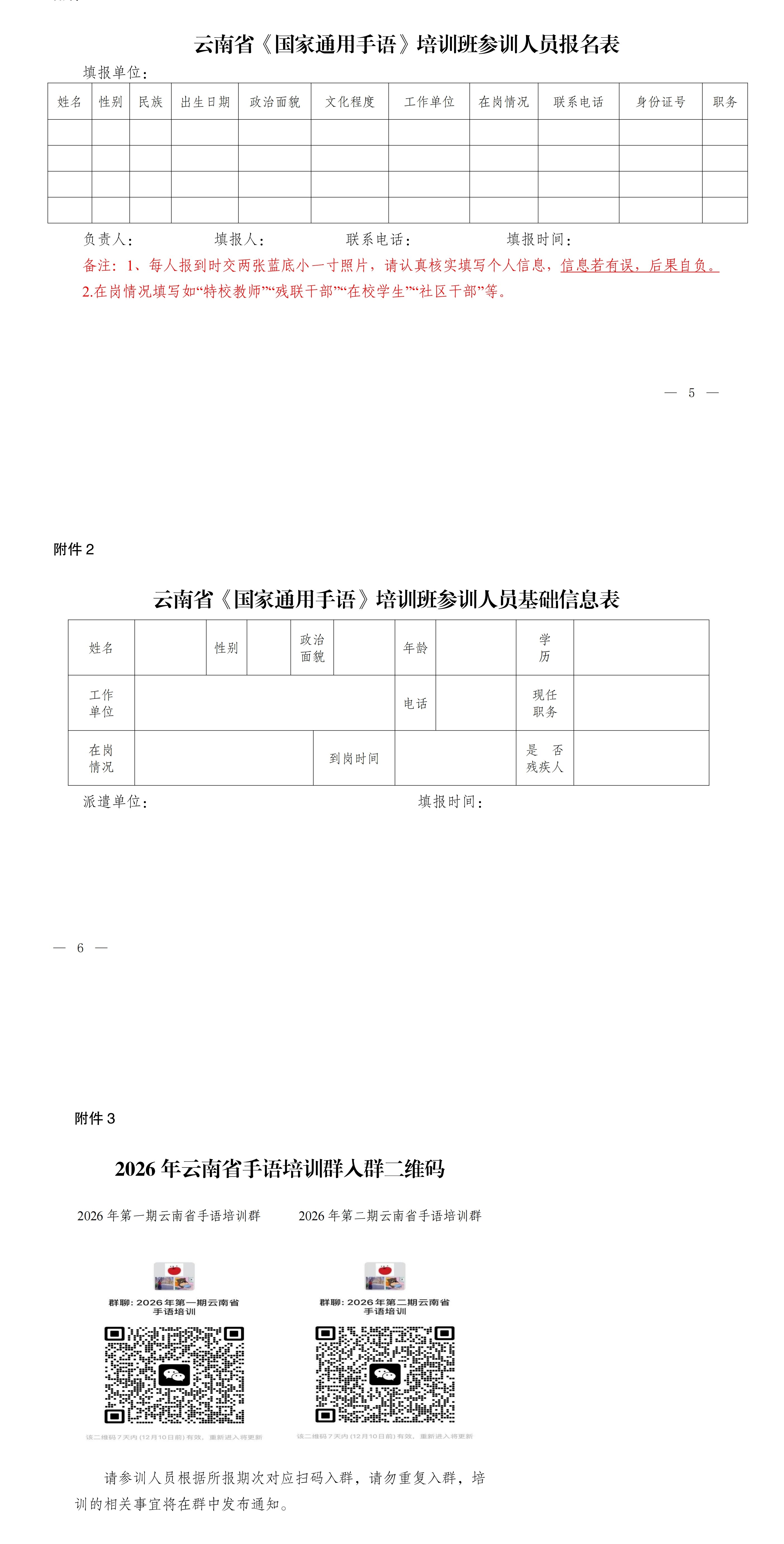 附件1 云南省《国家通用手语》培训班参训人员报名表.docx