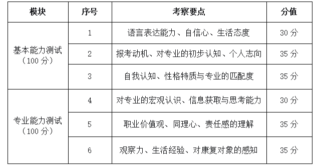 基本能力测试(100分):考查考生基本生活能力、基本学习能力。