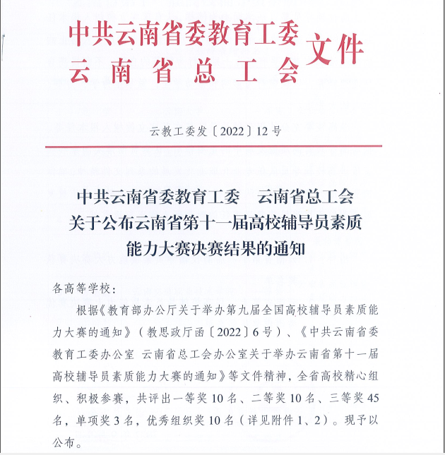 本次大赛由中共云南省委教育工委主办,旨在突出以赛带练、以赛代训,强化以赛促学、以赛促建,不断提升高校辅导员的素质能力,推动高校思政工作高质量发展。共有来自全省高校的65人参加辅导员素质能力大赛决赛。