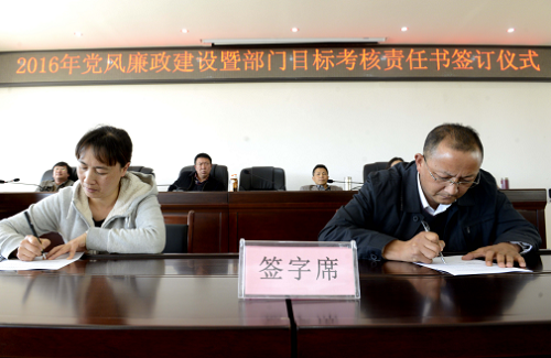 图为2016年度党风建设暨部门目标考核责任书签订仪式现场