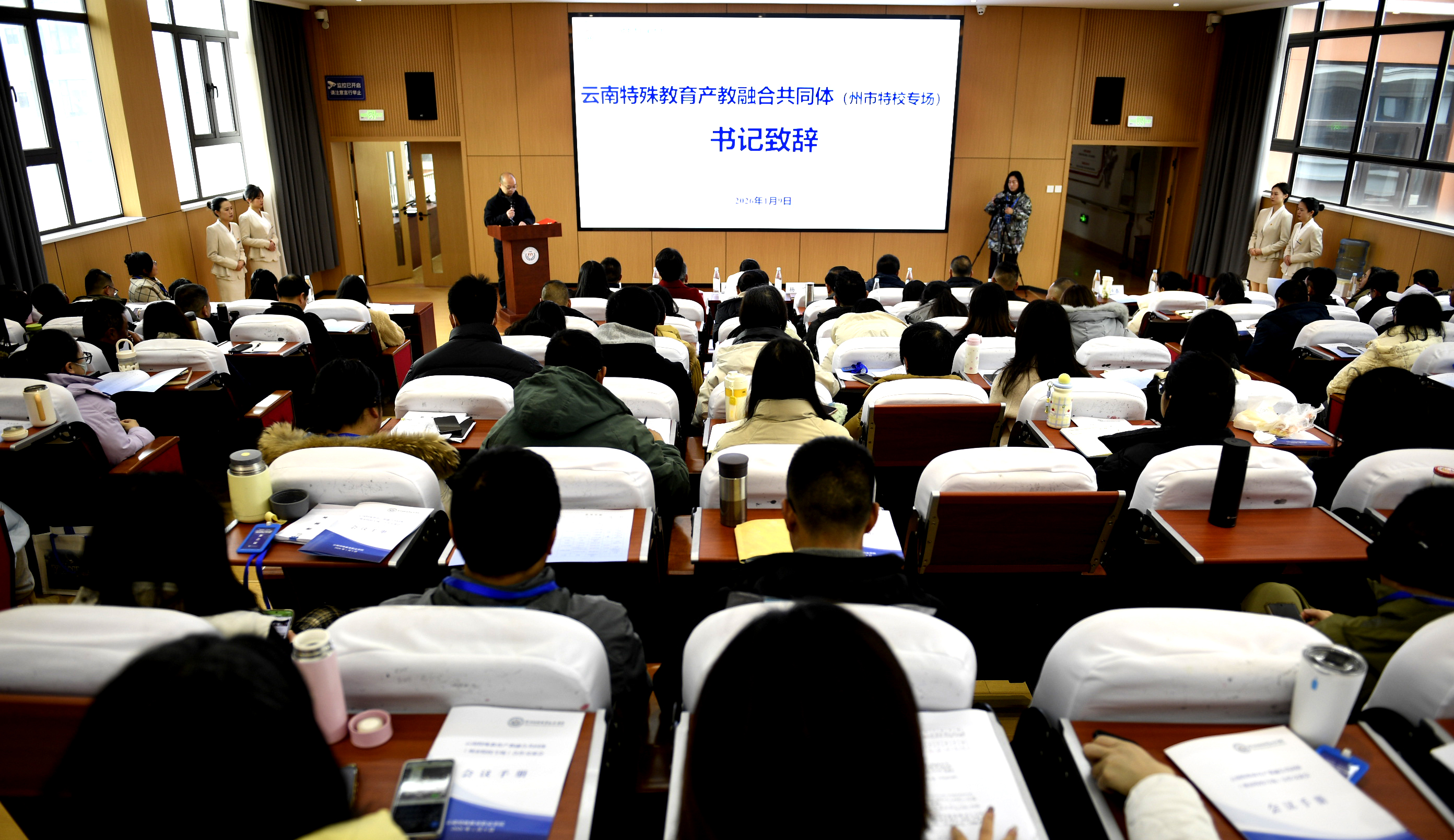 1月9日,云南特殊教育产教融合共同体(州市特校专场)合作交流会在beat365英国官方网站举行。会议以“协同赋能·共促发展——构建云南特殊教育产教融合新格局”为主题,聚焦特殊教育专业建设、校地协同发展与“十五五”规划建言,来自省教育主管部门、特殊教育领域专家及各州市特殊教育学校代表参会,共谋云南特殊教育高质量发展新路径。