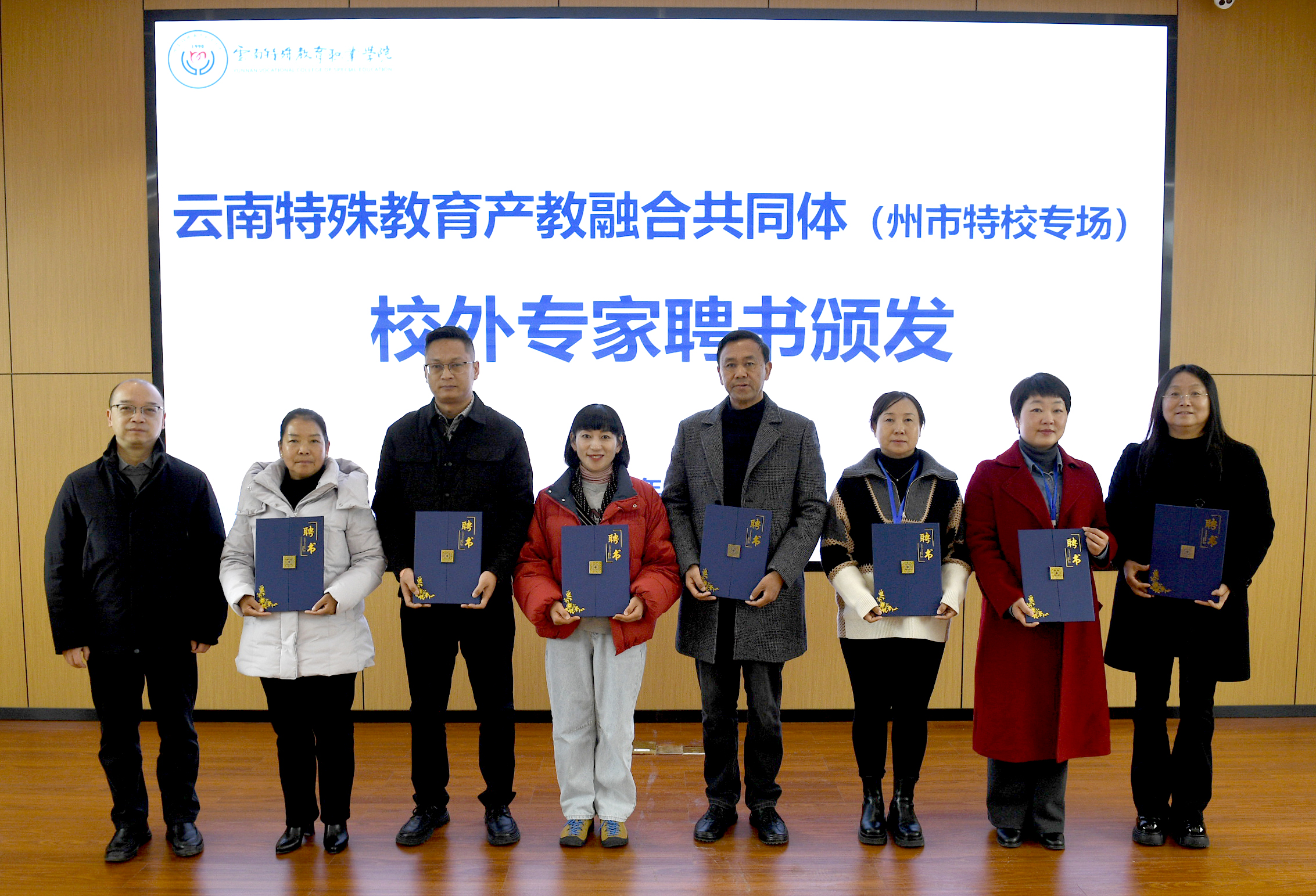 会议期间举行了校外专家聘任仪式,来自曲靖、昆明、普洱、大理、迪庆等地州市特殊教育学校的多位负责人受聘为校外专家。通过专家聘任,进一步充实该校在专业建设、教学改革、科研与管理等方面的智力支持,为共同体协同育人提供有力保障。