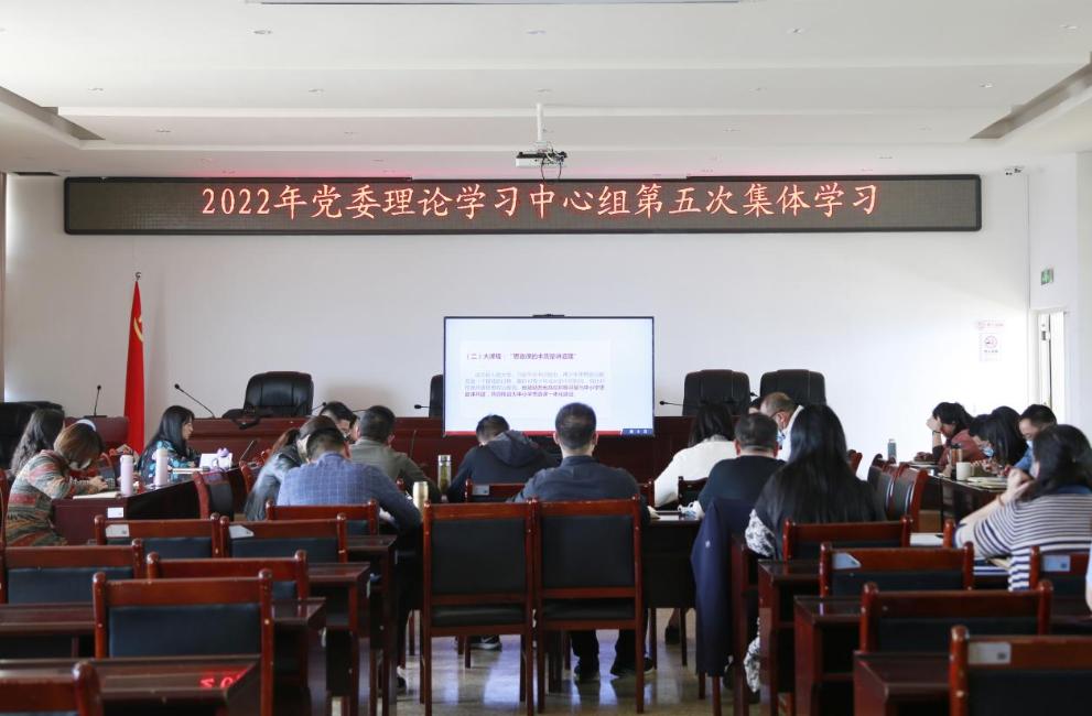 5月10日下午,学院开展2022年党委理论学习中心组第五次集体学习,学习围绕习近平总书记在中国人民大学考察时的重要讲话和给北京科技大学老教授回信精神、《新时代全面从严治团实施纲要》《高等学校思想政治理论课建设标准(2021年本)》、习近平总书记在北京冬奥会冬残奥会总结表彰大会上的重要讲话和在庆祝中国共产主义青年团成立100周年大会上的重要讲话精神以及中共中央政治局常务委员会关于当前新冠肺炎疫情防控形势、研究部署抓紧抓实疫情防控重点工作相关会议精神等六个内容进行,党委副书记石红领学,全体中心组成员参加学习。