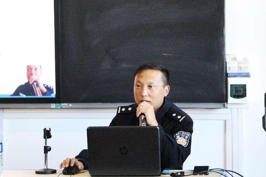 图为曲立军警官作宣讲