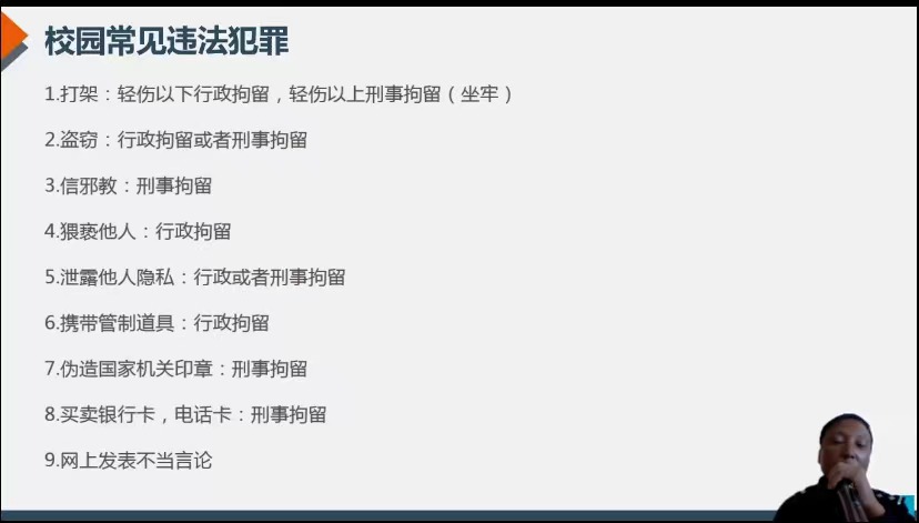 会上,曲警官从“什么是电信诈骗”、“电信诈骗离我们有多远”、“如何防范电信诈骗”及“校园常见违法犯罪”等方面进行宣讲,通过列举呈贡大学城及部分高校出现的诈骗、犯罪案件,进行了详细的讲解,生动形象地宣传了相关法治知识。